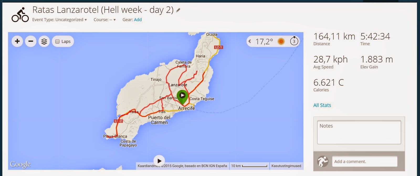 • Ilm: tõsine väljakutse – mega tugev tuul ja 3 tundi vihma. Nii kehva ilmaga ei ole Lanzarotel veel pidanud ratast sõitma.